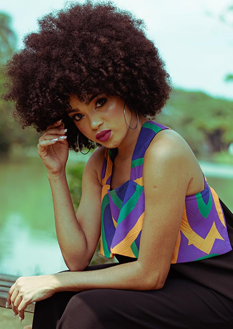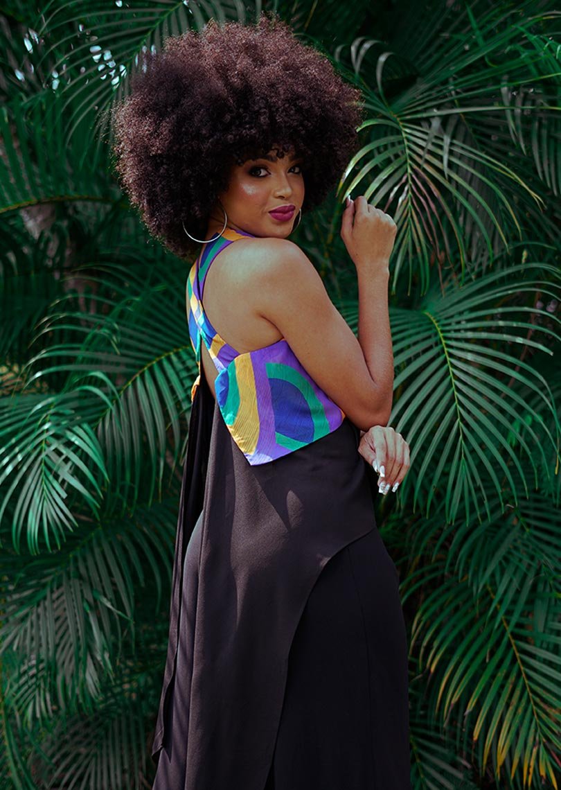 desc corta Conjunto Negro con Blusa Estampada Étnica Espalda descubierta Cruzada
